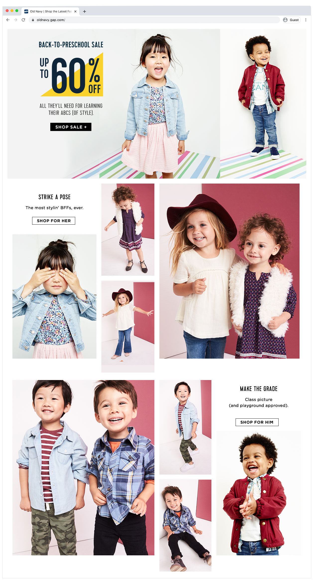 Old Navy Back to School Landing Page